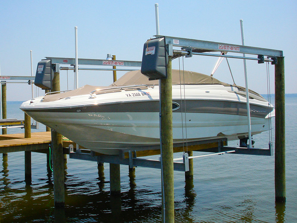 East Coast Boat Lifts has been manufacturing quality galvanized and aluminum boat lifts since 1989. We offer a variety of products including manual personal watercraft (PWC) lifts, low profile lift systems, boat house and overhead beam boat lifts for pontoons, electric motor boat lifts capable of lifting large vessels up to 30,000 lbs. We custom manufacture each manual and electric motor boat lift in Virginia using high quality galvanized, aluminum or stainless steel materials that meet our exacting standards.